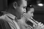 When he's not playing trumpet, Drew is either flying airplanes, playing softball, or working at his New Haven-based company, Veoci.
